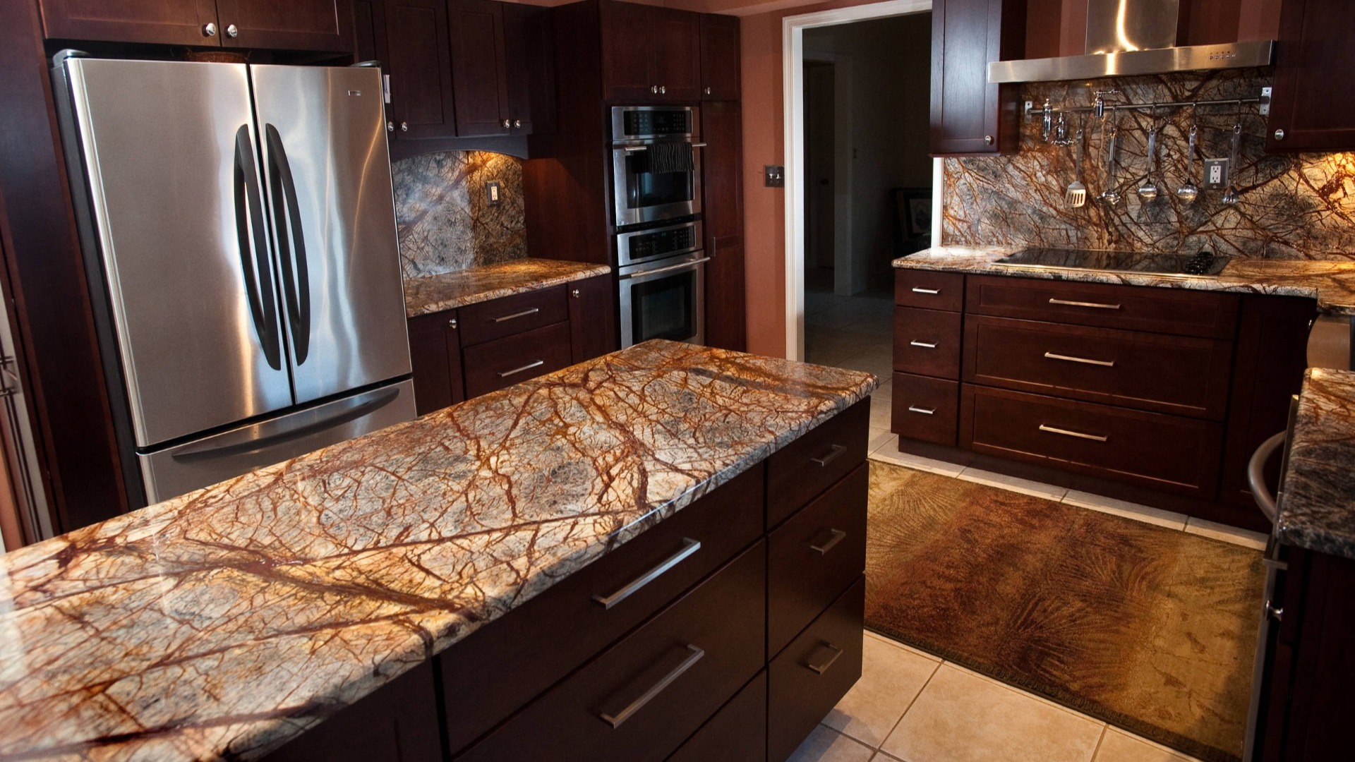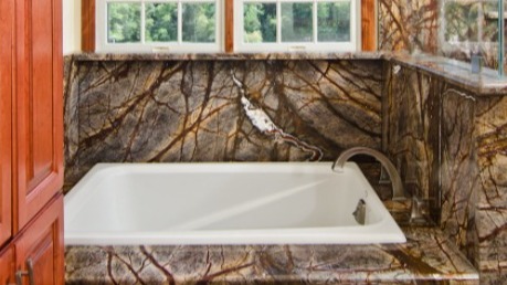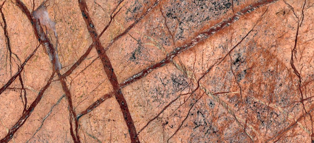 Forest Brown é um mármore bastante característico pelas diferentes "ramificações" e tonalidades que apresenta.
